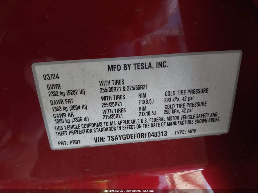 2024 TESLA MODEL Y | 7SAYGDEF0RF048313
