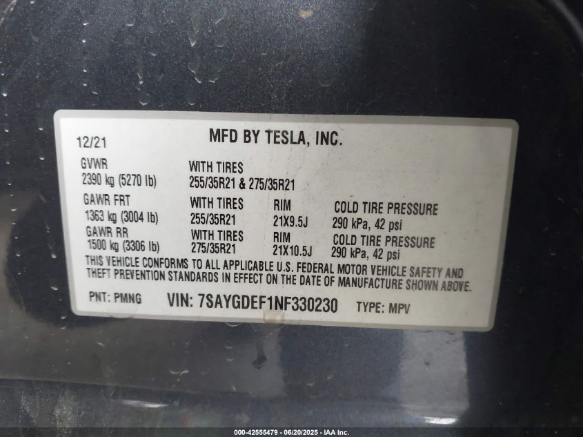 2022 TESLA MODEL Y | 7SAYGDEF1NF330230