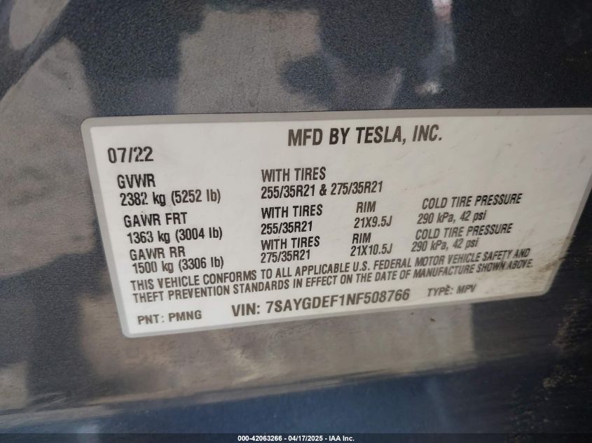 2022 TESLA MODEL Y | 7SAYGDEF1NF508766