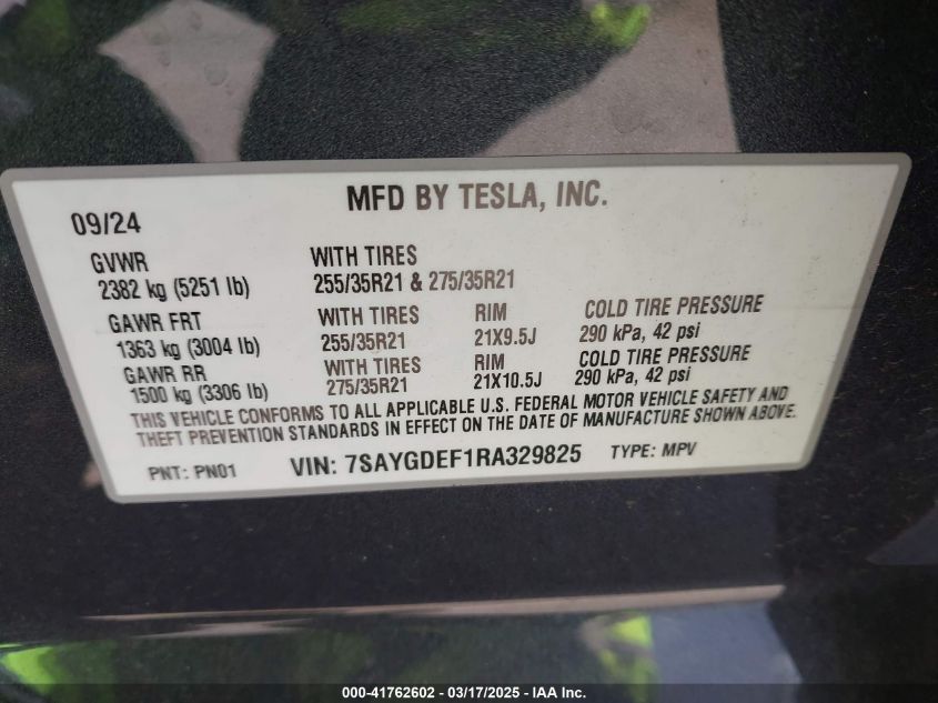 2024 TESLA MODEL Y | 7SAYGDEF1RA329825