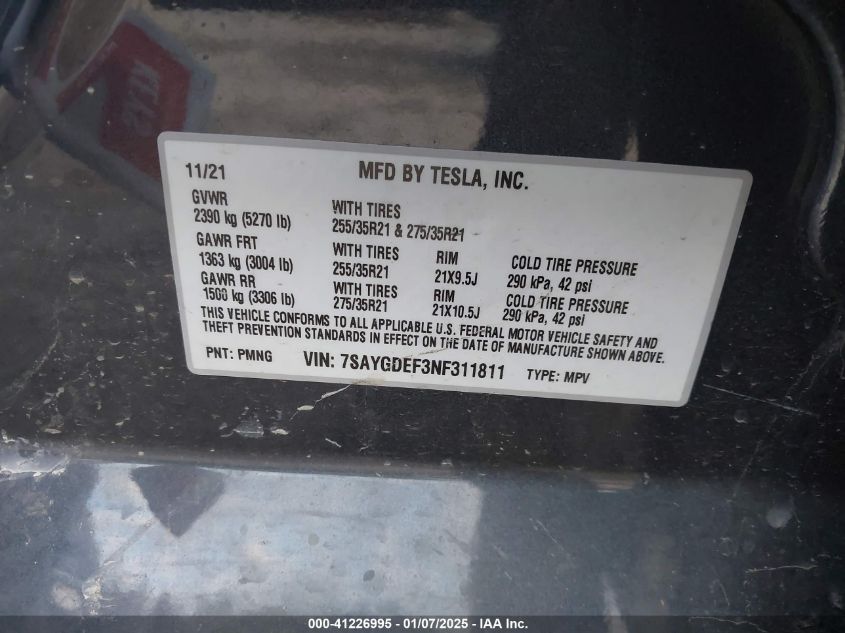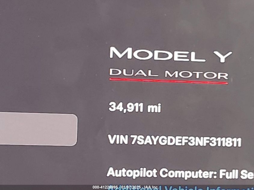 2022 TESLA MODEL Y | 7SAYGDEF3NF311811