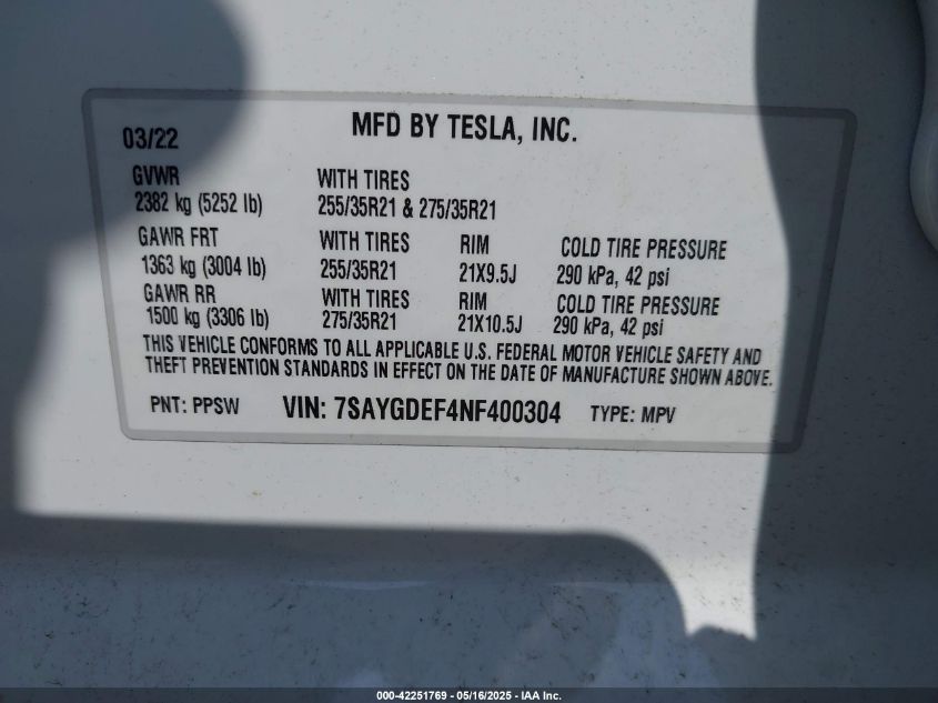 2022 TESLA MODEL Y | 7SAYGDEF4NF400304
