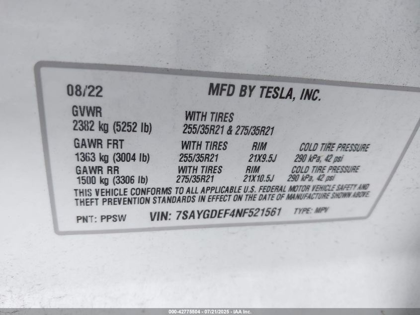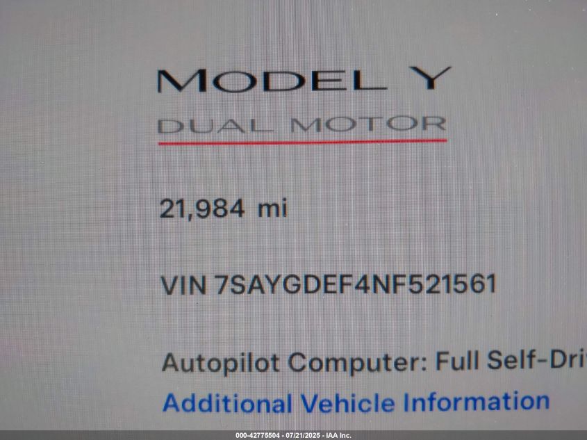 2022 TESLA MODEL Y | 7SAYGDEF4NF521561