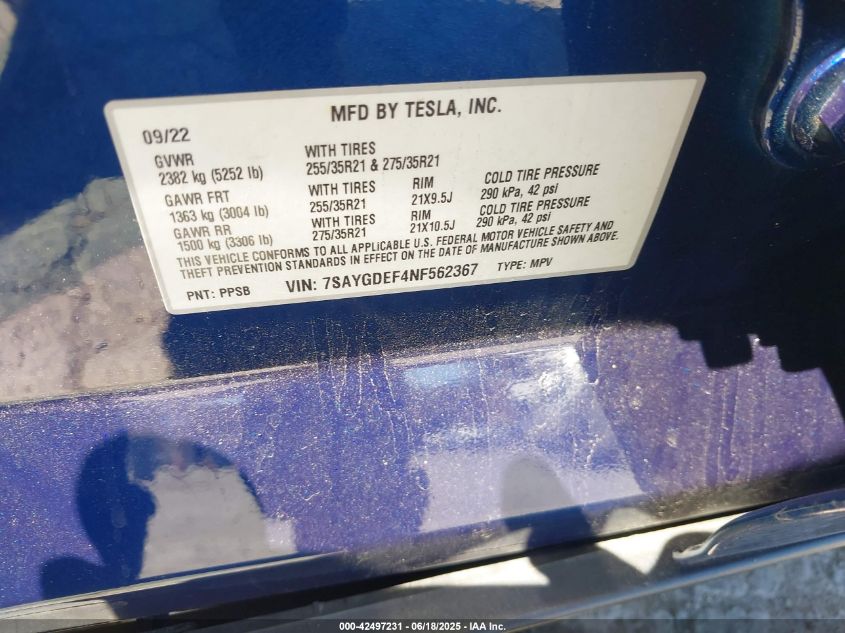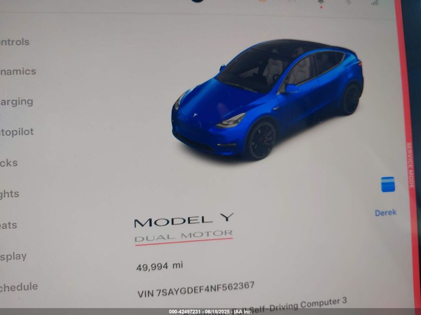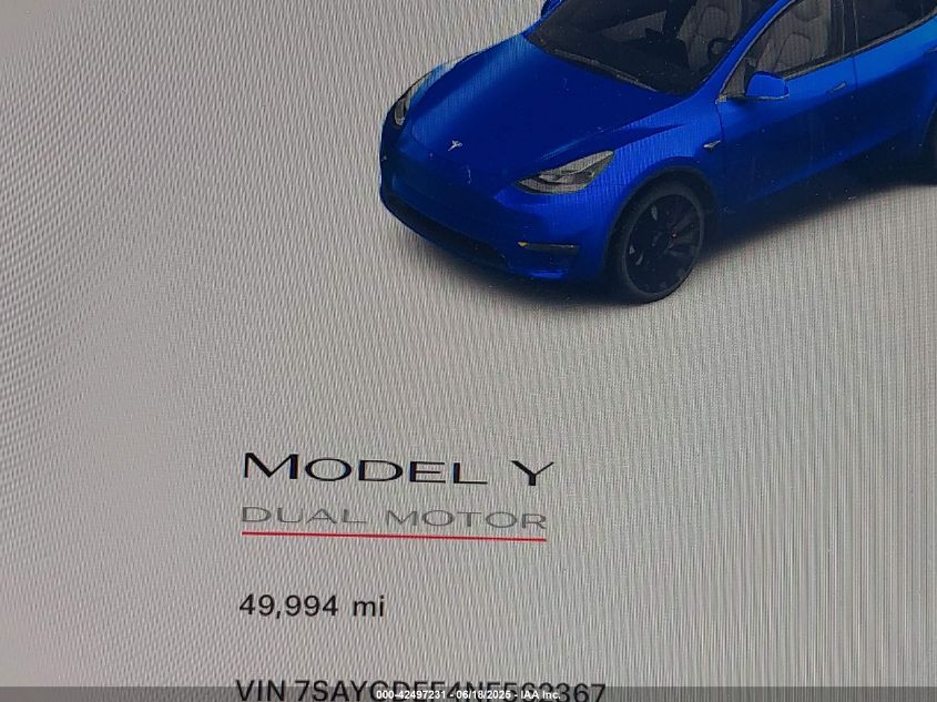 2022 TESLA MODEL Y | 7SAYGDEF4NF562367