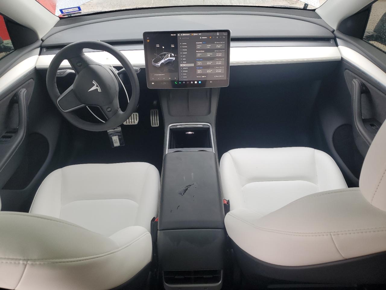 Inside, the Model Y maintains Tesla’s signature minimalist cabin design, with nearly all functions controlled via the large center touchscreen. Two interior themes are available: the standard All Black interior and the optional Black and White color scheme, which adds white seats, white dashboard trim, and black accents for a clean, futuristic contrast. Both interiors use vegan leather upholstery (Tesla's proprietary material) and include features like heated seats, panoramic glass roof, and optional HEPA filtration system. Premium trims include ambient lighting, 14-speaker audio, and wood or white synthetic dashboard trim, depending on the interior color choice.