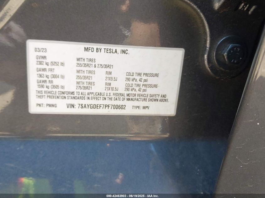 2023 TESLA MODEL Y | 7SAYGDEF7PF700602