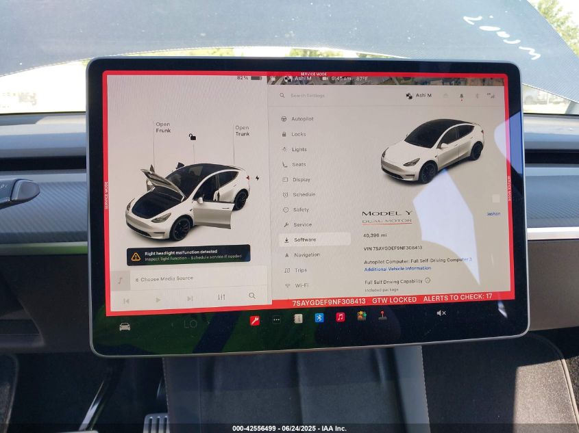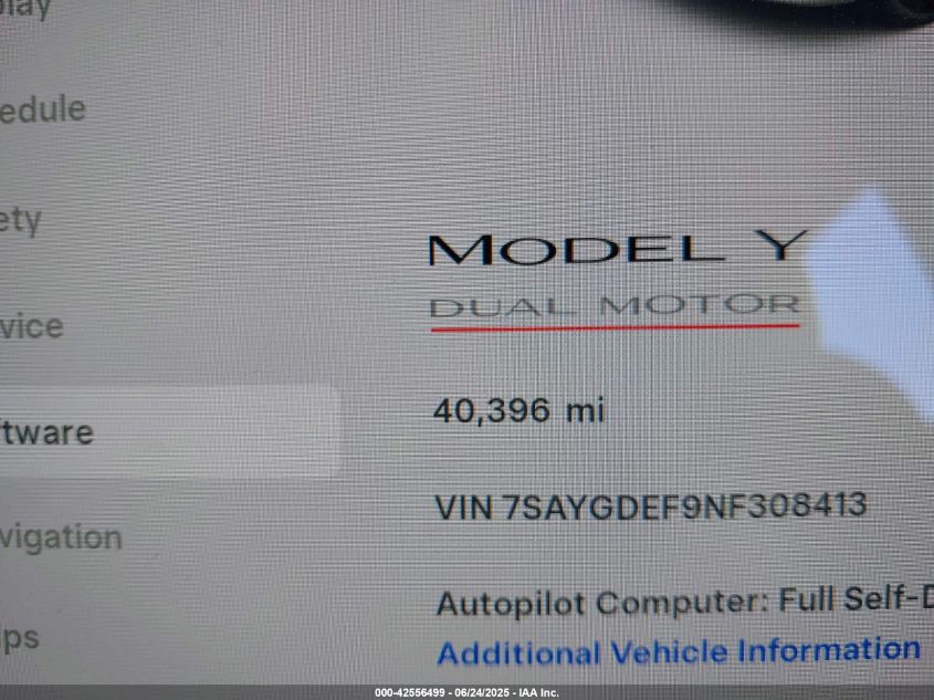 2022 TESLA MODEL Y | 7SAYGDEF9NF308413