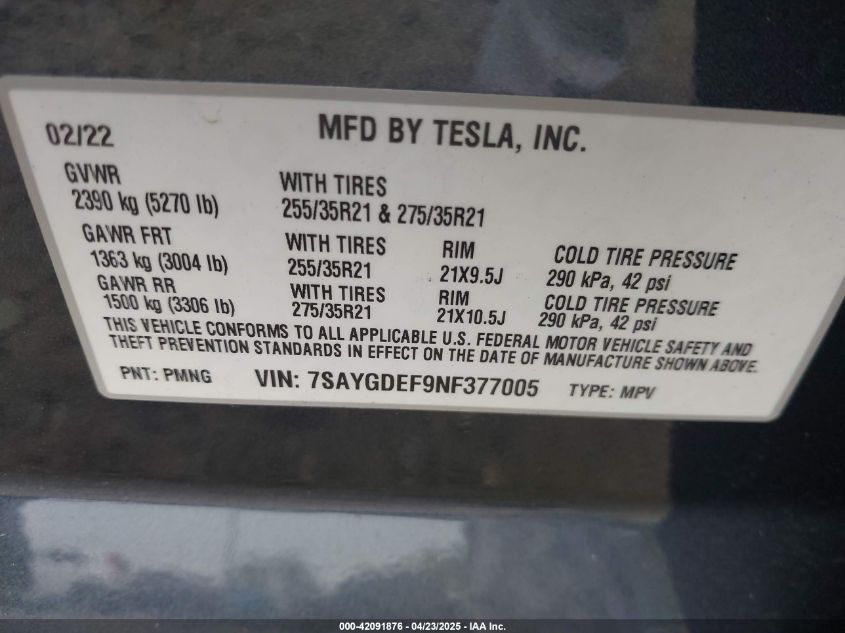 2022 TESLA MODEL Y | 7SAYGDEF9NF377005