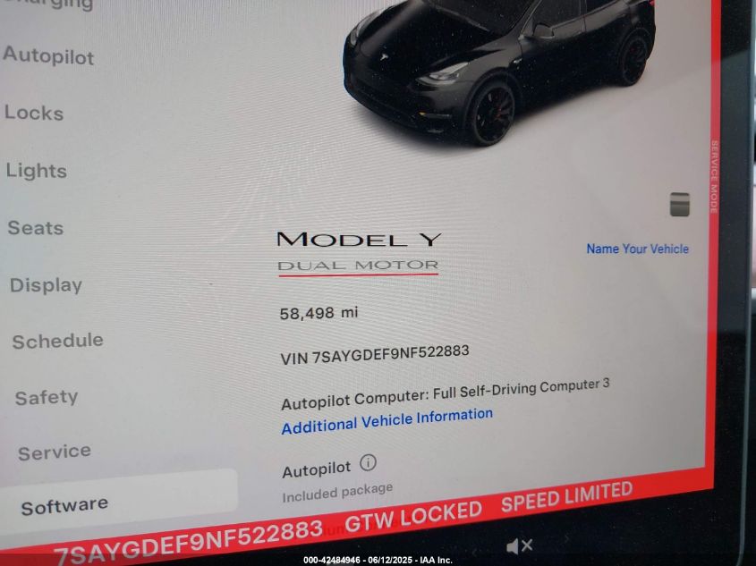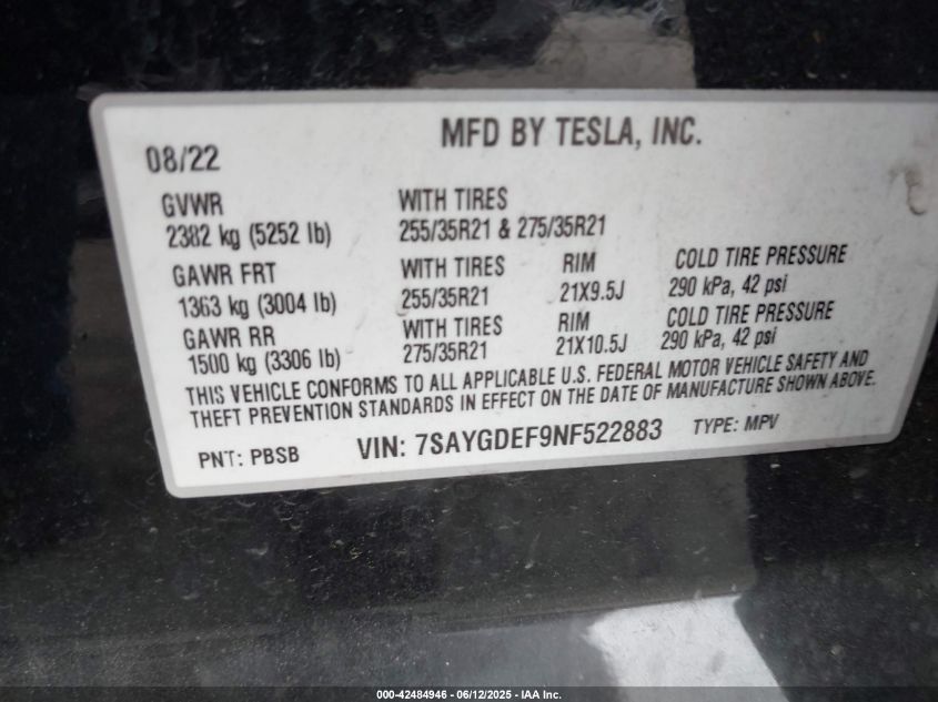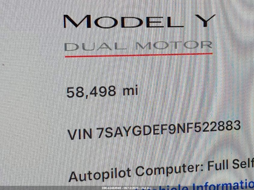 2022 TESLA MODEL Y | 7SAYGDEF9NF522883