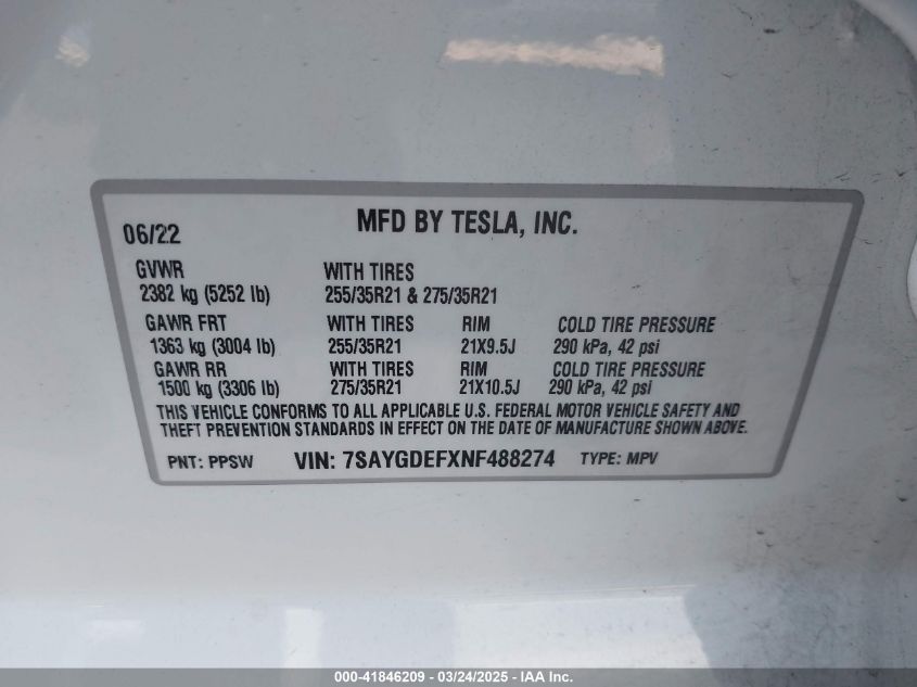 2022 TESLA MODEL Y | 7SAYGDEFXNF488274