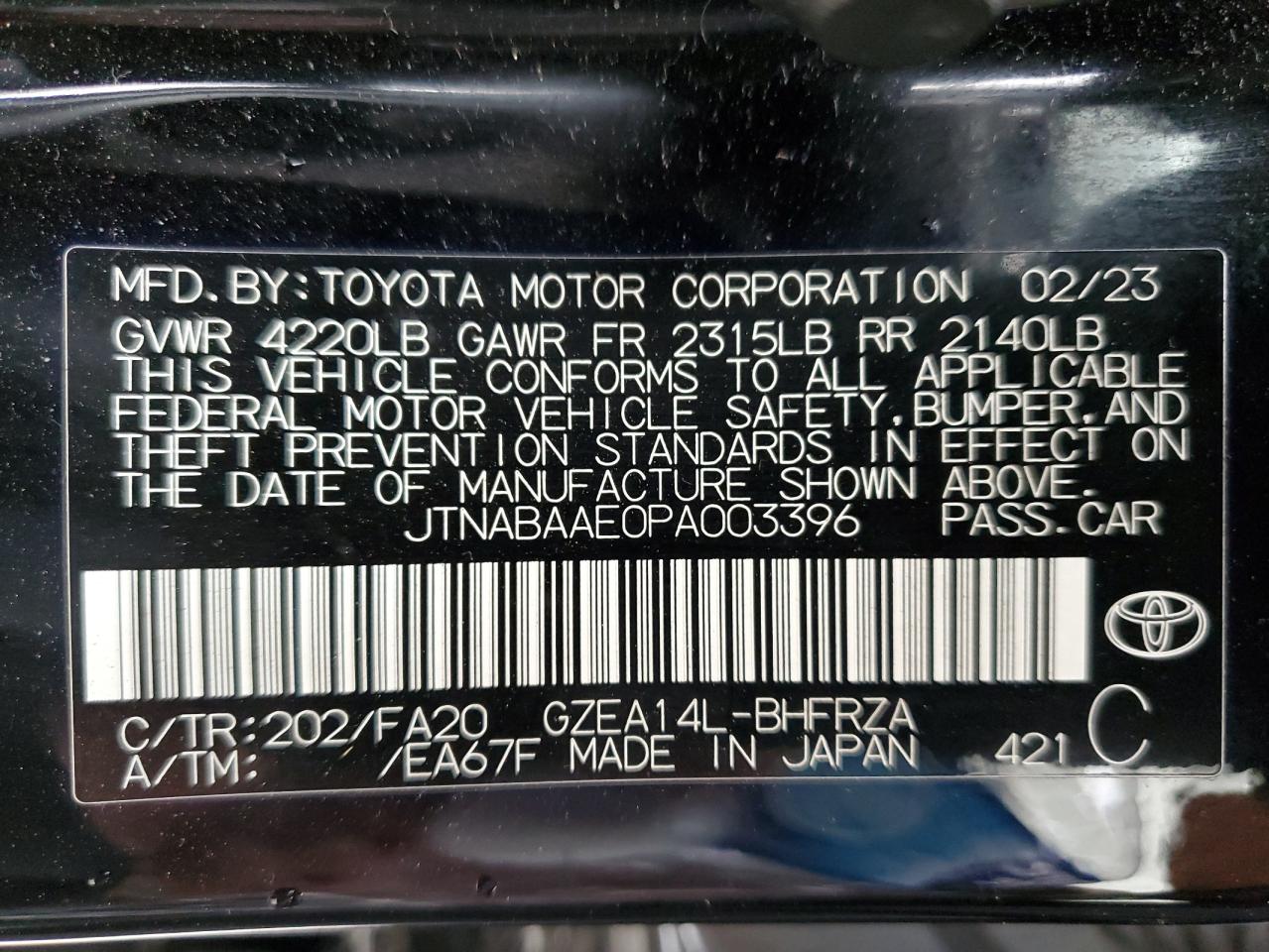 2023 TOYOTA GR COROLLA | JTNABAAE0PA003396