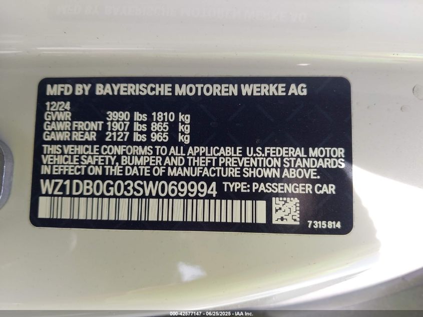 2025 TOYOTA SUPRA | WZ1DB0G03SW069994
