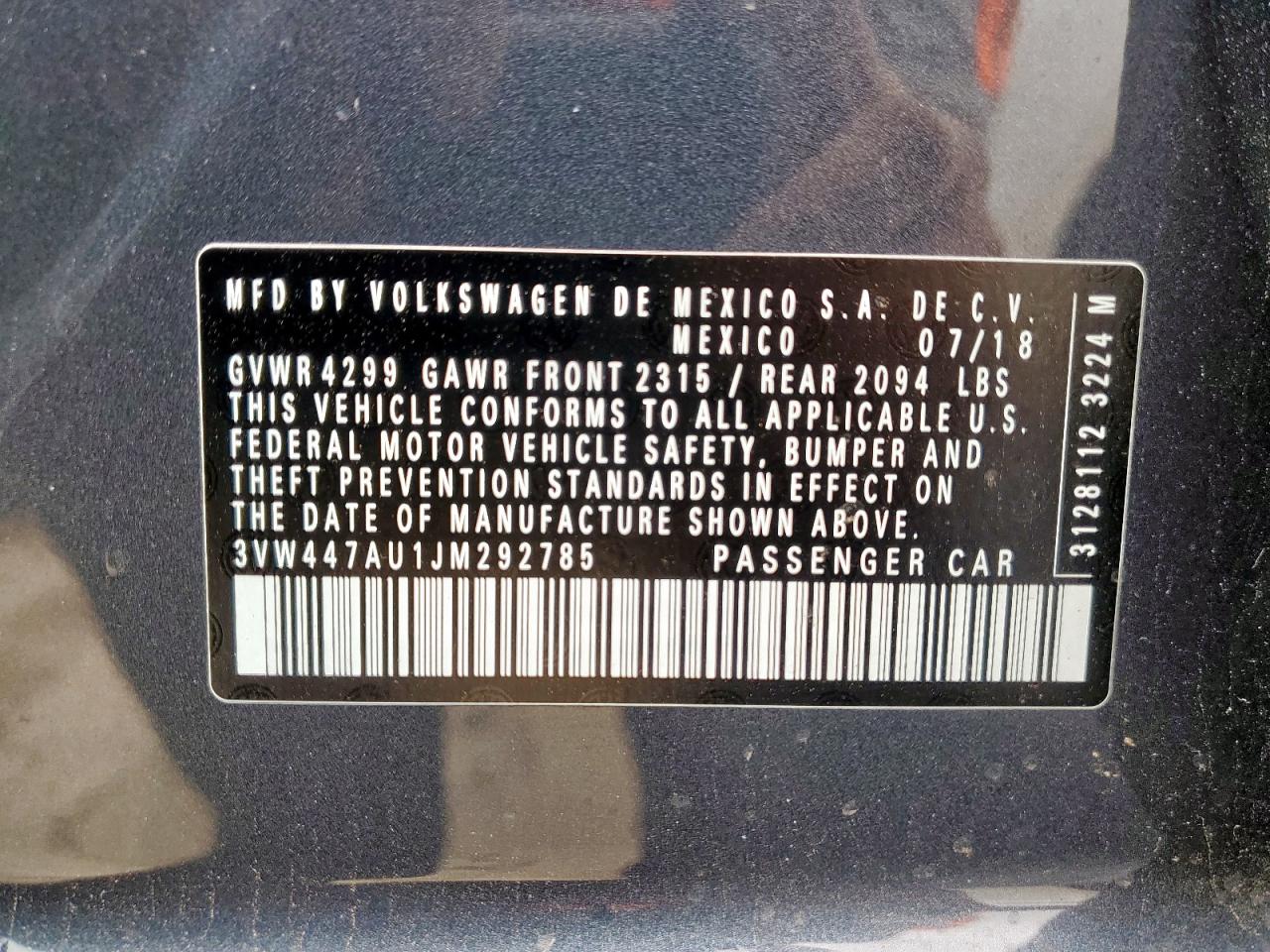 3VW447AU1JM292785