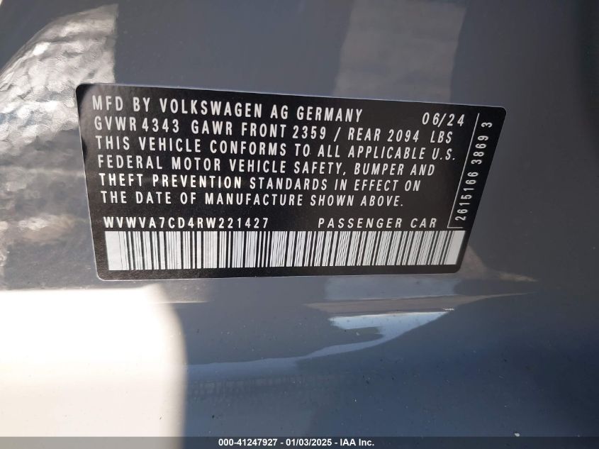 2024 VOLKSWAGEN GOLF GTI | WVWVA7CD4RW221427