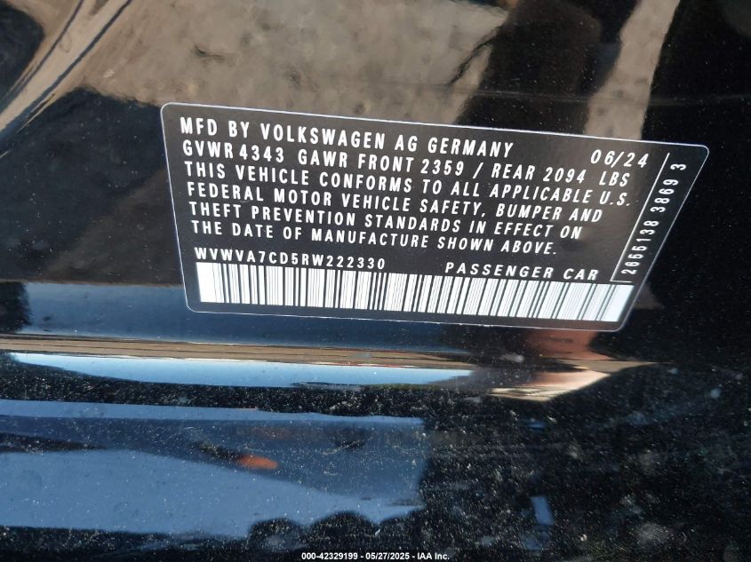 2024 VOLKSWAGEN GOLF GTI | WVWVA7CD5RW222330