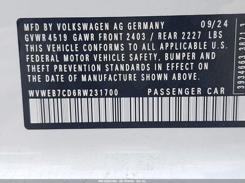 2024 VOLKSWAGEN GOLF R | WVWEB7CD6RW231700