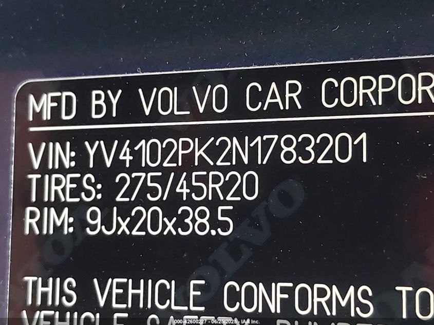 2022 VOLVO XC90 | YV4102PK2N1783201