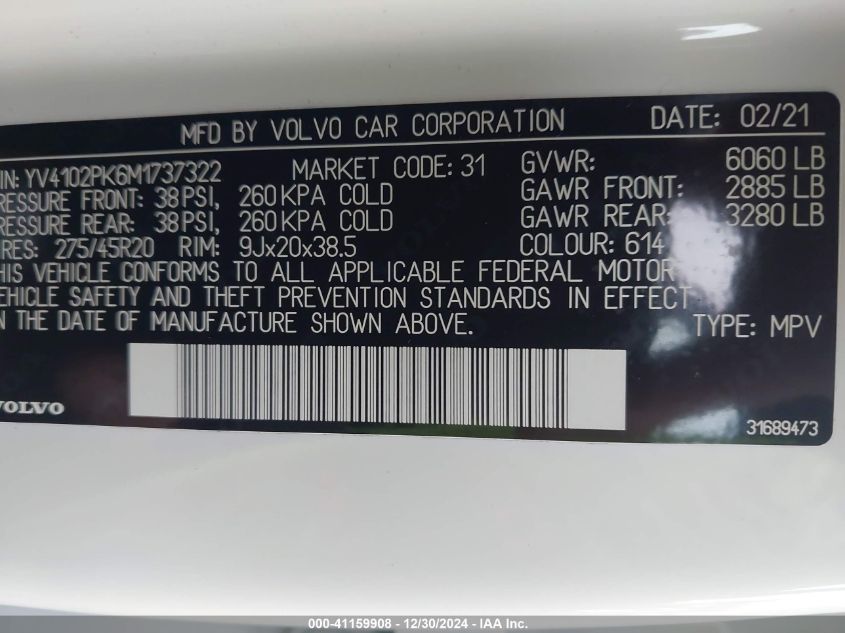 2021 VOLVO XC90 | YV4102PK6M1737322