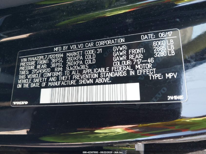 2018 VOLVO XC90 | YV4A22PL7J1201994