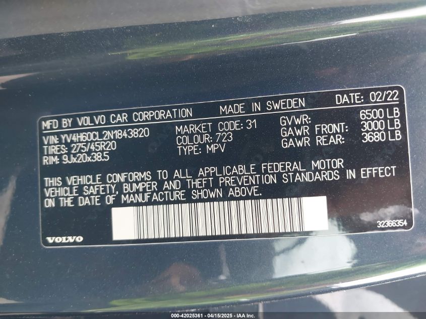 Five-door full-size luxury 3-row crossover SUV with upright proportions, elegant Scandinavian minimalism, and longitudinal engine layout. Built on Volvo’s SPA platform, it offers a blend of family utility, refined comfort, and strong passive safety. Available in 6- or 7-passenger configurations depending on trim and seat layout.