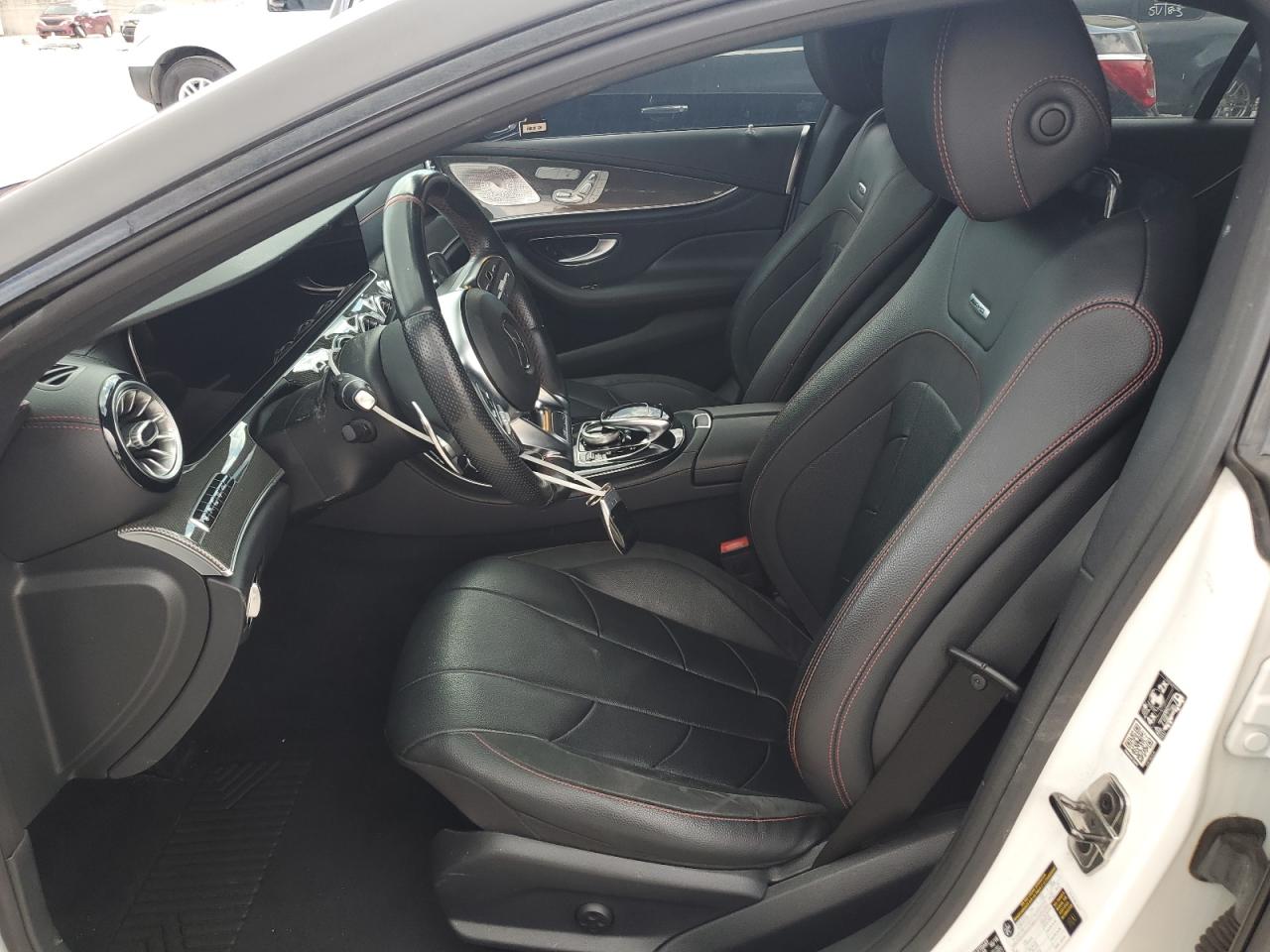 Inside, the CLS combined modern minimalist design with rich materials and technical sophistication. Standard upholstery was MB-Tex synthetic leather, with upgrades to genuine leather and designo Nappa leather available in shades like Macchiato Beige, Magma Grey, and Tartufo Brown. AMG models like the CLS 53 featured exclusive AMG-specific upholstery patterns, red contrast stitching, and optional carbon fiber or metal weave trim elements.