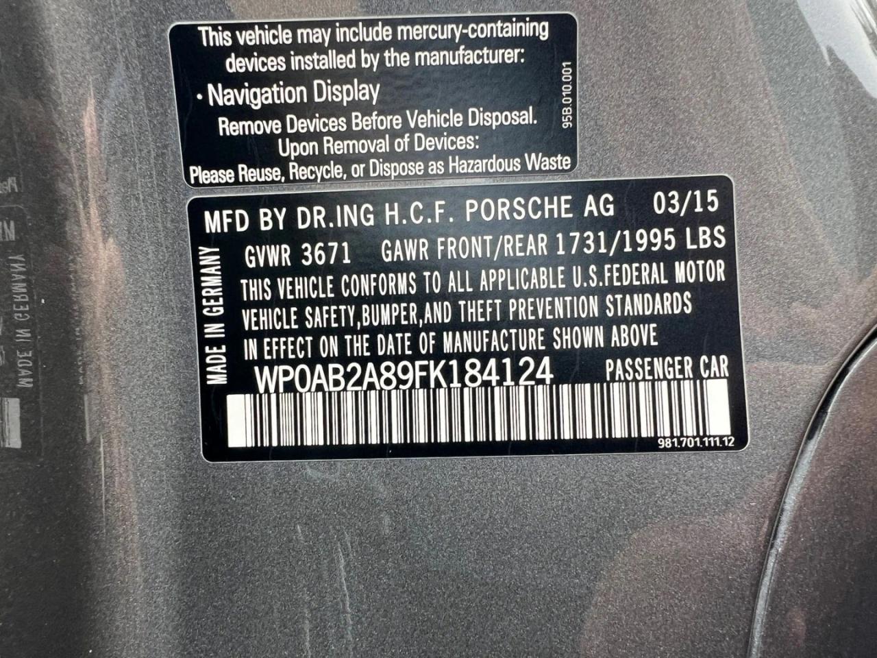 2015 | WP0AB2A89FK184124